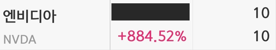 그때 매수한 우량주들은 대부분 수익 중인데, 특히 엔비디아는 850%가 넘는 수익률을 기록하고 있다.